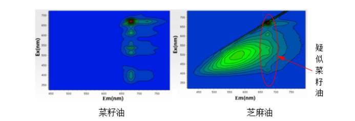 目前國內外檢測食用油品質的方法主要有色譜法和光譜法等。色譜法費時、成本較高,光譜法選擇性低。三維熒光光譜能較好地反映激發(fā)波長和發(fā)射波長同時變化時的熒光強度信息,其強度等高線具有指紋性。現(xiàn)有研究證明通過指紋的形狀、走向、主峰位置、特征峰強度等具體指標,可實現(xiàn)對復雜混合物樣品的鑒定。