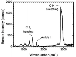 圖4.單血小板源性囊泡的拉曼光譜圖。拉曼峰表征了出現(xiàn)在這種囊泡內(nèi)的特征化學(xué)成分