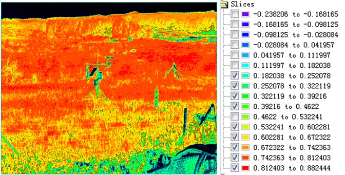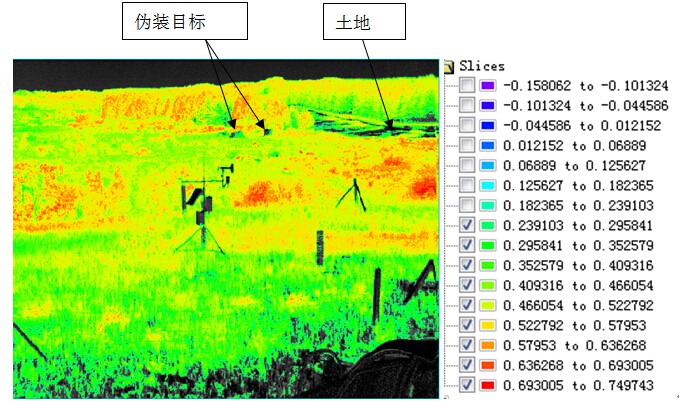 不同的目標(biāo)物(或植被)的歸一化植被指數(shù)是不同的,利用植被標(biāo)準算法進行處理后可以得到相應(yīng)的指數(shù)系數(shù)。