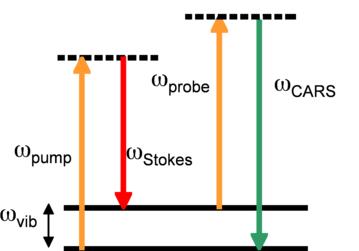 圖3:CARS原理簡圖和實(shí)驗(yàn)裝置簡圖