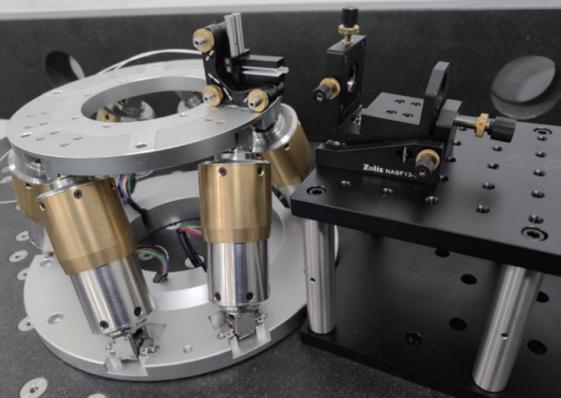 六軸并聯(lián)機(jī)器人加持光通信器件進(jìn)行多維度調(diào)整,通過(guò)光功率反饋尋找*高效率的耦合位置