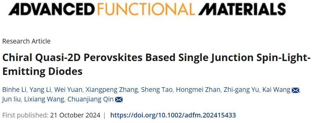 近日,長(zhǎng)春應(yīng)化所秦川江研員團(tuán)隊(duì)在手性準(zhǔn)二維發(fā)光二極管方面取得重要進(jìn)展,研究成果以“Chiral quasi-2D perovskites based single junction spin-light-emitting diodes”為題發(fā)表在國(guó)際**期刊Advanced Functional Materials 上。長(zhǎng)春應(yīng)用化學(xué)研究所為該論文第一單位,李彬和博士為第一作者,秦川江研究員、王愷教授為共同通訊作者。今天小卓為大家分享該研究成果,希望對(duì)您的科學(xué)研究或工業(yè)生產(chǎn)帶來一些靈感和啟發(fā)。
