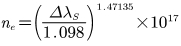 在計(jì)算得到高斯線寬的基礎(chǔ)上,對(duì)實(shí)驗(yàn)測(cè)量得到的Hα譜線進(jìn)行反卷積,得到洛倫茲展寬,減去范德瓦爾斯展寬后即得到斯塔克展寬。利用式(5)可得到等離子體電子密度[8-9]: