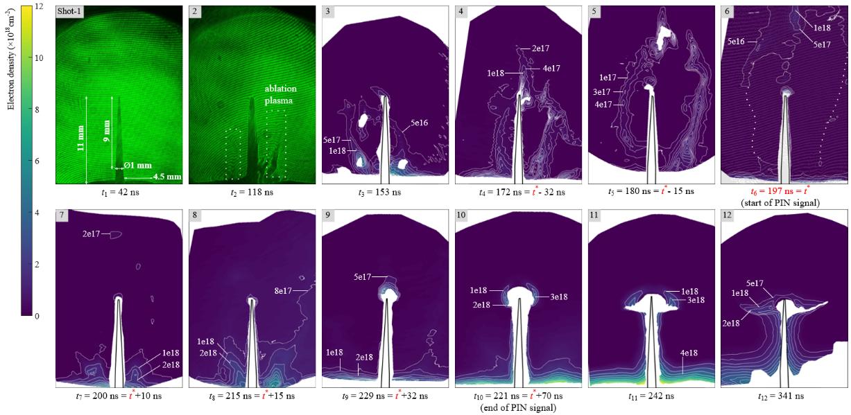 研究團(tuán)隊(duì)在西安交通大學(xué)漢-1脈沖功率裝置上進(jìn)行了實(shí)驗(yàn),采用多種診斷手段對(duì)WS-RPD的等離子體動(dòng)力學(xué)行為進(jìn)行了深入分析。其中包括:激光干涉測(cè)量,用于觀察等離子體電子密度分布;四分幅ICCD成像,捕捉等離子體可見光;電參數(shù)測(cè)量,包括Rogowski線圈測(cè)量電流及D-dot探頭測(cè)量電壓;X射線測(cè)量,采用PIN二極管探測(cè)X射線的輻射劑量率。