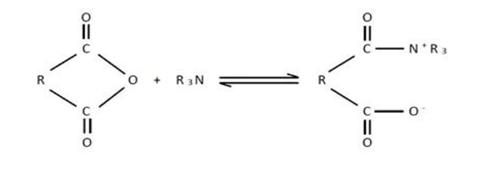 圖1 胺固化雙酚A環(huán)氧樹脂被胺類固化劑打開環(huán)氧鍵,形成羧酸陰離子和環(huán)氧基。