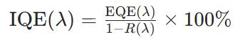 內(nèi)量子效率(Internal Quantum Efficiency, IQE)用于衡量電池內(nèi)部吸收的光子轉(zhuǎn)化為可收集載流子的效率,不考慮入射光的反射損失。其計(jì)算需結(jié)合外量子效率(EQE)和表面反射率(R(λ)),具體方法如下: