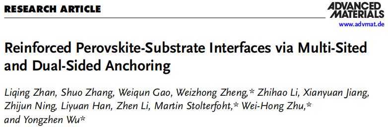 分享一篇來自華東理工大學吳永真團隊的新研究成果,本文以“Reinforced Perovskite-Substrate Interfaces via Multi-Sited and Dual-Sided Anchoring”為題發(fā)表于期刊Advanced Materials,原文鏈接:https://doi.org/10.1002/adma.202506048。希望對您的科學研究或工業(yè)生產帶來一些靈感和啟發(fā)。