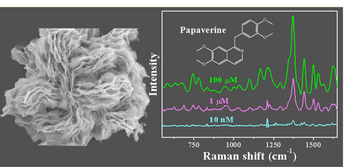 當(dāng)一些分子被吸附到某些粗糙的金屬表面上時,他們的拉曼散射強(qiáng)度會極大的增強(qiáng),后來科學(xué)界把這一現(xiàn)象命名為表面增強(qiáng)拉曼散射效應(yīng)(Surface-enchanced Raman Spectroscopy, SERS),簡稱SERS。常用的基底有貴金屬(Cu,Ag,Au 等)粗糙電極、貴金屬溶膠、納米顆粒、納米陣列等,基底也賦予了SERS具備更高的高靈敏度,故廣泛應(yīng)用于生物制藥、食品安全、刑偵安檢等領(lǐng)域。該技術(shù)可以獲得痕量分子結(jié)構(gòu)信號,特別適合于對微量物質(zhì)的研究分析。但其基底重現(xiàn)性和穩(wěn)定性難以控制,這一定程度上限制了其推廣和應(yīng)用。因此,研究和開發(fā)優(yōu)良的基底成為SERS研究的重點和熱點。