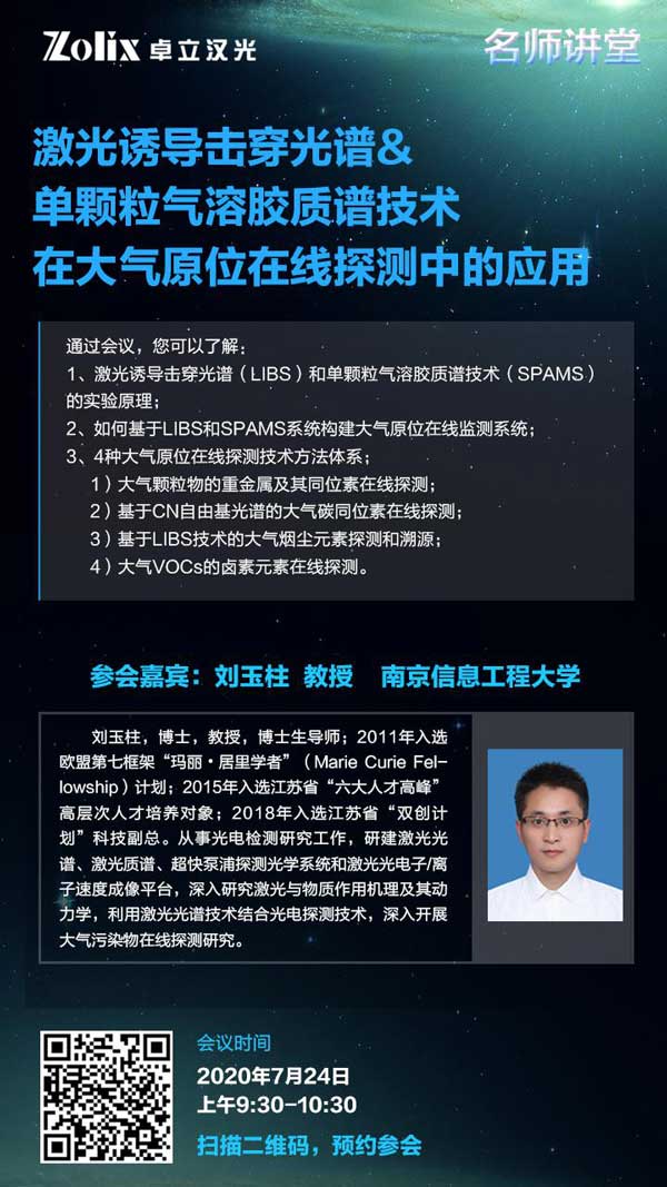 為帶大家進(jìn)一步了解如何利用光譜及質(zhì)譜技術(shù)對(duì)單顆粒氣溶膠進(jìn)行實(shí)時(shí)分析,本次會(huì)議邀請(qǐng)到南京信息工程大學(xué)劉玉柱教授,于2020年7月24日上午9:30-10:30,與大家在線上分享激光誘導(dǎo)擊穿光譜&單顆粒氣溶膠質(zhì)譜技術(shù)在大氣原位在線探測(cè)中的應(yīng)用;