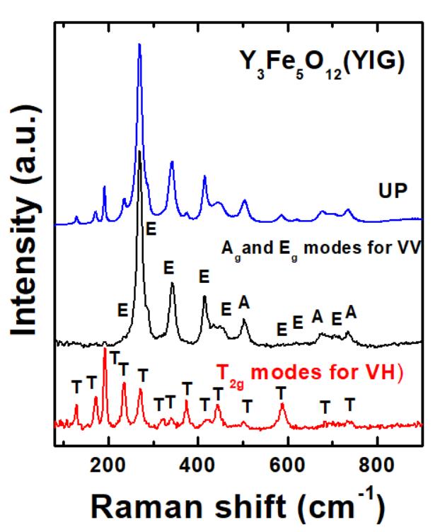 我對YIG樣品很熟悉,將用偏振選擇定則下,我做的YIG樣品的偏振拉曼光譜,供你參考。