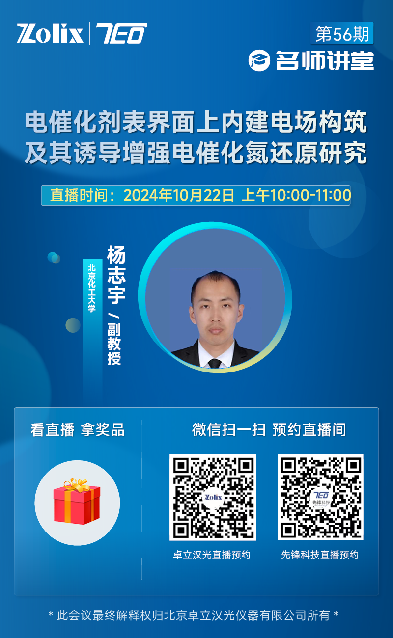 10月22日上午10:00—11:00,北京化工大學副教授——楊志宇,為大家?guī)碇v座《電催化劑表界面上內建電場構筑及其誘導增強電催化氮還原研究》。直播期間更有豐富好禮相送,歡迎屆時參加!