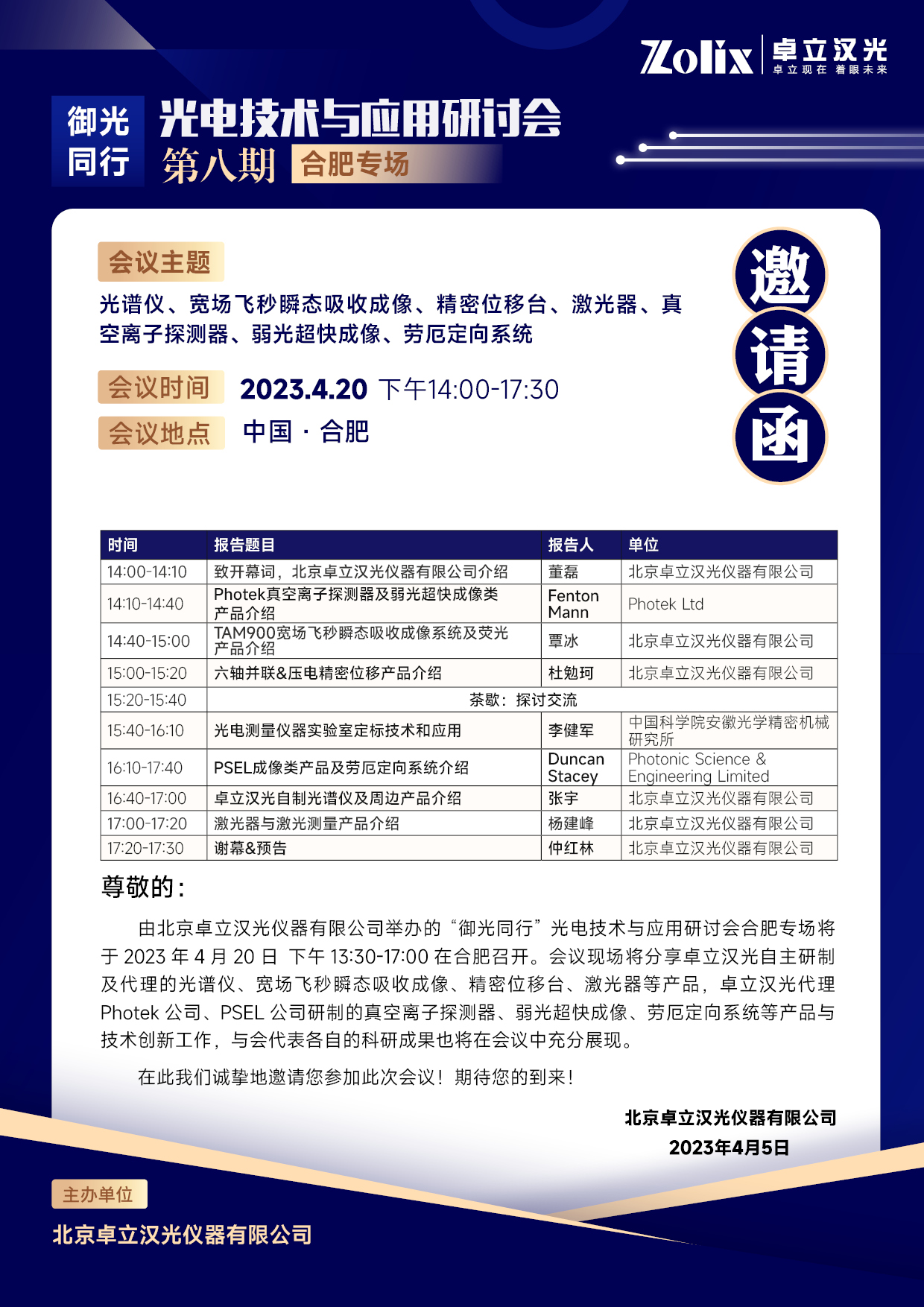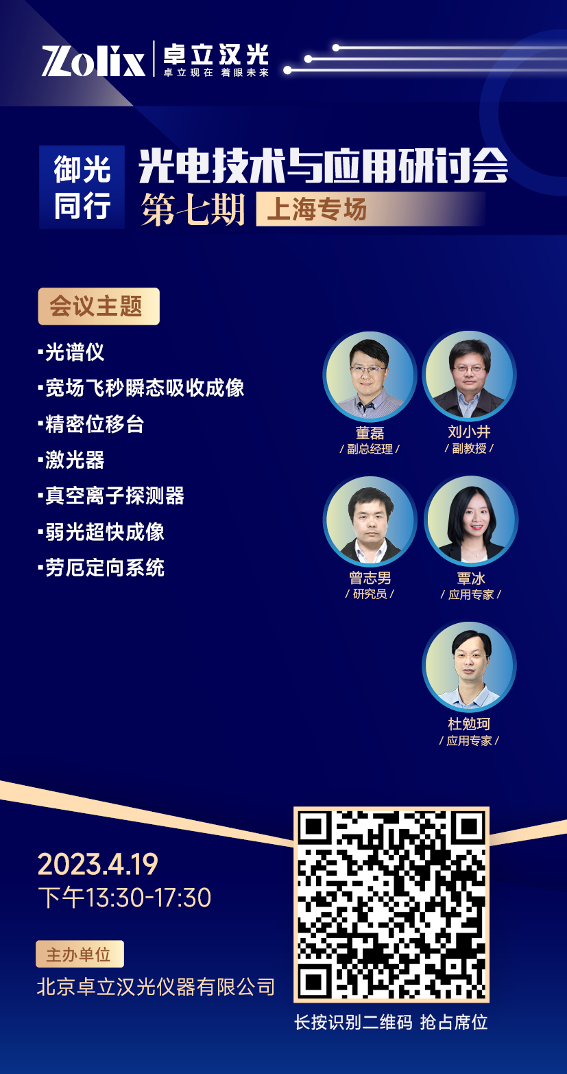 截至目前,卓立漢光已順利舉辦了五期線下/線上研討會(huì),觀眾熱情高漲,為了滿足大家對(duì)會(huì)議的期待,接下來的三期“御光同行”主題研討會(huì)將分別在北京、上海、合肥舉辦,誠(chéng)邀會(huì)議所在城市及周邊單位的專家學(xué)者參加會(huì)議。