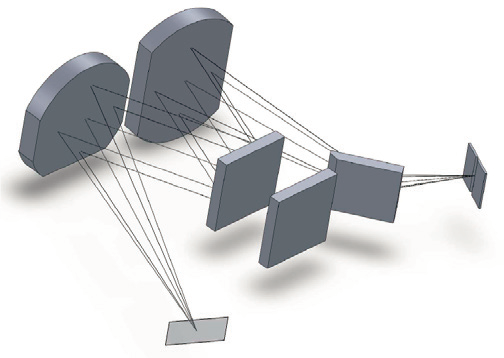 傳統(tǒng)的C-T 結(jié)構(gòu)光譜儀通常采用球面鏡作為成像元件, 由于入射光并非理想的點光源信號(實際為長方形或正方形光斑,取決于狹縫開口形狀)而導致大部分信號光處于離軸狀態(tài),離軸信號成像一方面會有彗差,另一方面離軸信號光通過成像光路后,在焦平面上匯聚于空間上不同的位置,且兩個方位互相垂直形成一個短交線,這種現(xiàn)象稱為像散,彗差和像散將會導致成像模糊而使得光譜儀的光學性能受到較大的影響。