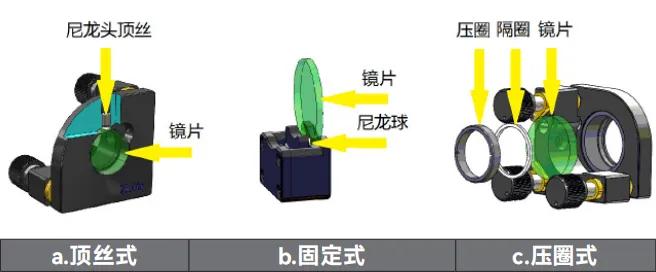 光學元件的夾持主要有:頂絲式、固定式和壓圈式(參見圖1)