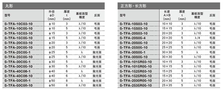 日本SIGMA KOKI經(jīng)濟(jì)型保護(hù)鋁膜反射鏡選型表