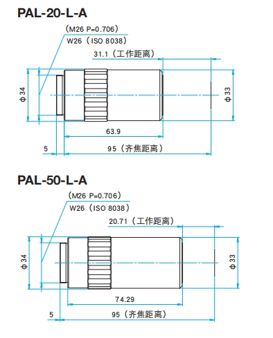 SIGMA  KOKI長工作距離顯微物鏡外形圖: