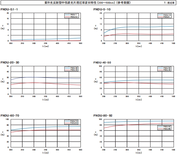 ?紫外光用中性濾光片的基板使用紫外光透過率很高的合成石英,從近紫外到可見光譜區(qū)具有幾乎相同的透過率。