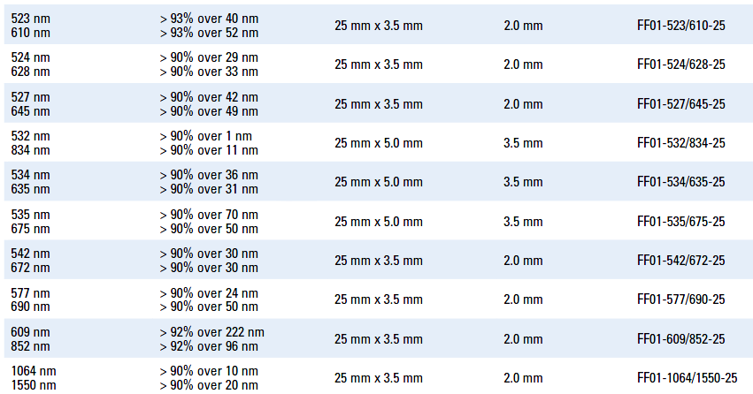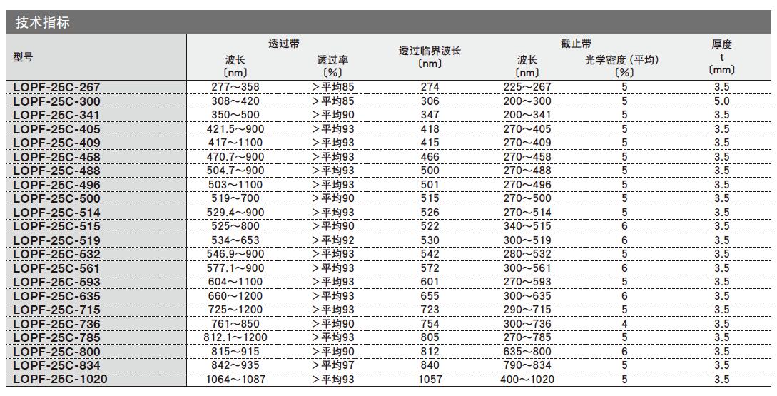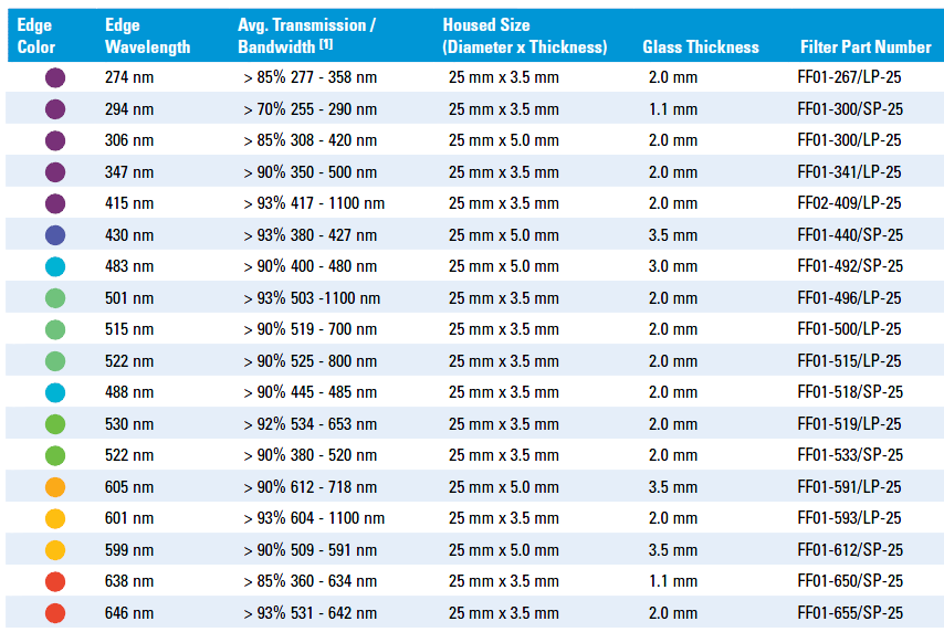 帶通濾光片(Bandpass Filter) 與截止濾光片(Cutoff Filter) 往往指的是同一類產(chǎn)品,比如說短波截止濾光片(Short Wave Cutoff Filter) 與長(zhǎng)波通濾光片(Long Wave Pass Filter) 是同一產(chǎn)品但說法不同而已。同樣地,長(zhǎng)波截止濾光片與短波通濾光片指的也是同一種產(chǎn)品。我們習(xí)慣上,更常用長(zhǎng)波通(LP) 和短波通(SP) 來區(qū)分。