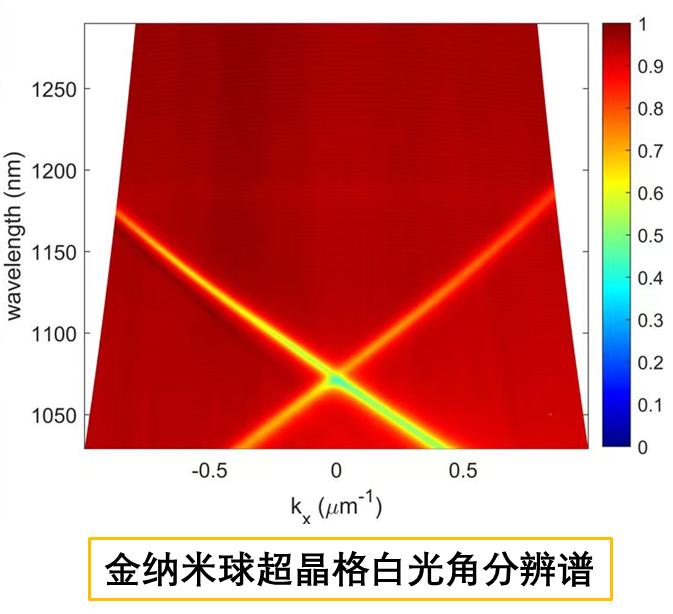 金納米球超晶格近紅外波段的白光角分辨光譜,反映該結(jié)構(gòu)的光學(xué)共振模式隨著白光入射角度的變化規(guī)律,根據(jù)測量結(jié)果可優(yōu)化結(jié)構(gòu)設(shè)計(jì)