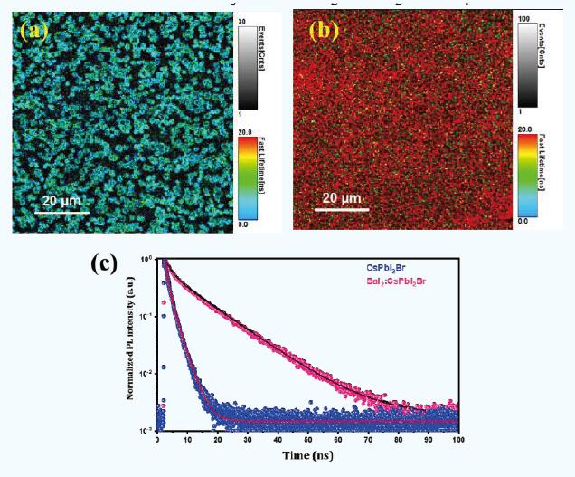 下圖研究中,展示了一種動態(tài)熱風(DHA)制備工藝來控制全無機PSC 的薄膜形態(tài)和穩(wěn)定性,該工藝不含有常規(guī)的有害反溶劑,可以在大氣環(huán)境中制備。同時,鈣鈦礦摻有鋇(Ba2+) 堿金屬離子(BaI2:CsPbI2Br)。這種DHA 方法有助于形成均勻的晶粒并控制結晶,從而形成穩(wěn)定的全無機PSC。從而在環(huán)境條件下形成完整的黑色相。經過DHA處理的鈣鈦礦光伏器件,在0.09cm小面積下,效率為14.85%,在1x1cm的大面積下,具有13.78%的*高效率。DHA方法制備的器件在300h后仍然保持初始效率的92%。