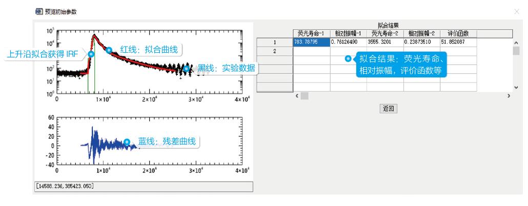 NO.1 通過算法對數據上升沿進行擬合,獲得時間響應函數IRF,然后對整條衰減曲線進行卷積計算和擬合得到熒光壽命。