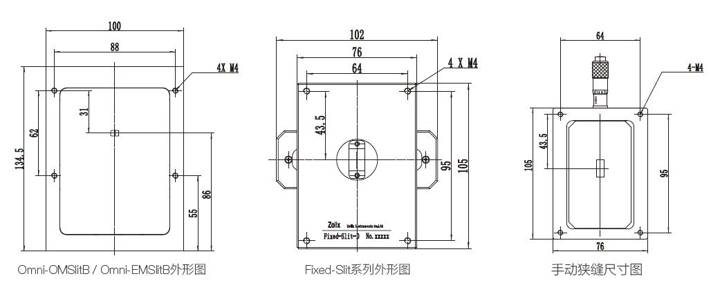 注2、電動(dòng)狹縫與手動(dòng)狹縫的安裝孔位有差別,配置外設(shè)時(shí),需要注意安裝孔位是否匹配