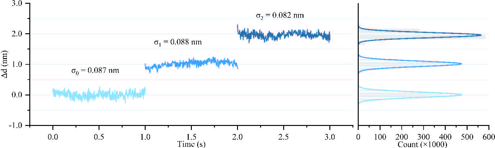 據(jù)點(diǎn)進(jìn)行平均計(jì)算獲得。在 0.01 至 1 MHz 的頻率范圍內(nèi),噪聲功率譜密度(NPSD)被計(jì)算為 0.032 nm,充分體現(xiàn)了系統(tǒng)的精度。