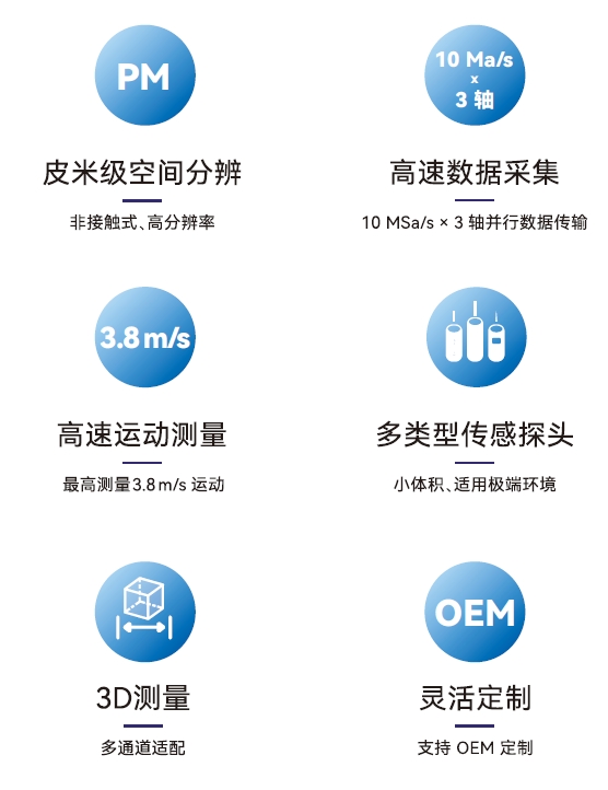 差分型探頭: 利用開放式的參考臂設(shè)計(jì),能夠同時(shí)實(shí)現(xiàn)兩個(gè)目標(biāo)之間的相對(duì)位移測(cè)量。