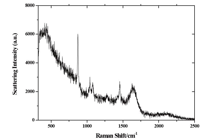 Fig. 6: Raman spectrum of skin, 20s exposure time, 20mW laser