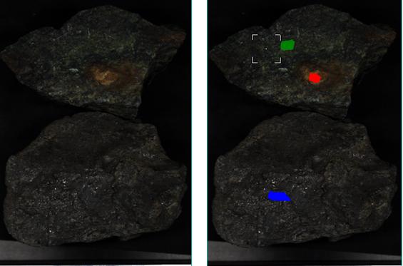 The samples were subjected to an imager in the 400-1000nm band. Spectral characteristic spectral information of mineral rocks in the 400nm-1000nm band was very limited. The spectral characteristics of this band were utilized to classify and identify them, and the results were not ideal. Figure 3 shows one of the samples to be checked, and three regions of interest are selected as the research objects. Figure 4 displays the characteristic spectral curve corresponding to the region of interest in Figure 3. Its characteristic spectral curve is very limited.