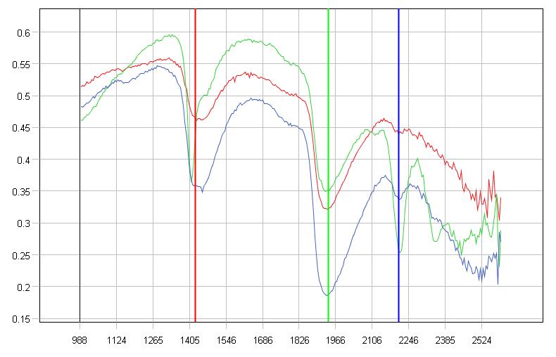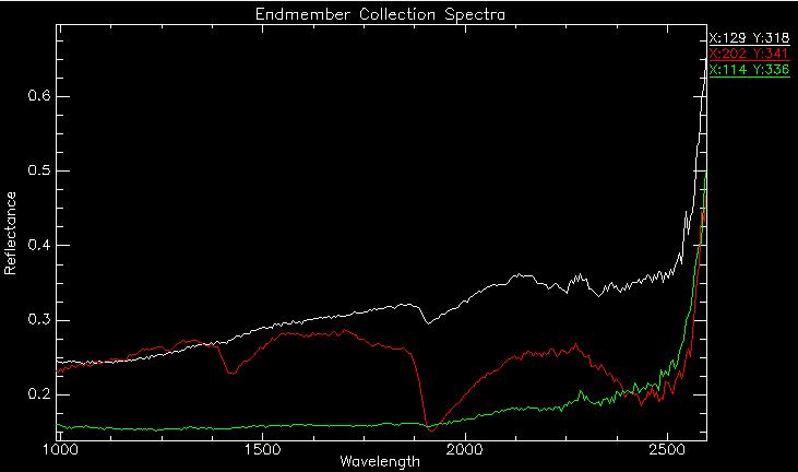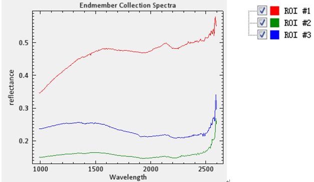 Figure 3 Characteristic spectral profiles of the 3 regions of interest