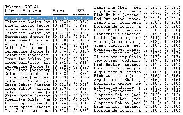 Figure 4 Spectral match of target spectrum to Anthophyllite (anthophyllite)