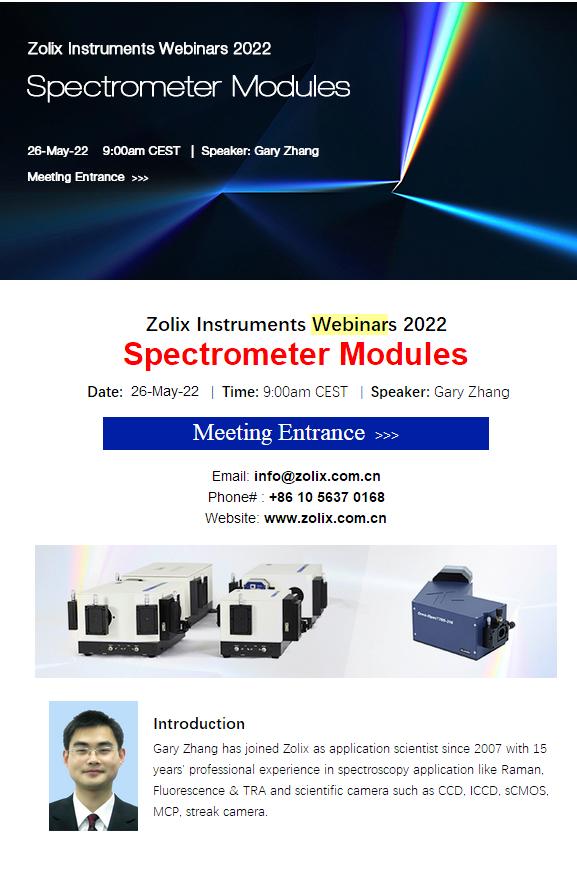 On May 26th, Zolix Instruments hold a webinar to introduce of spectrometer module and application. Gary Zhang, Application Scientist, introduced the functions and features of spectrometer module in detail. At same time, Gary Zhang replied all the questions about the spectrometer, he successfully helped customers learn spectrometer modules and solved their doubts.