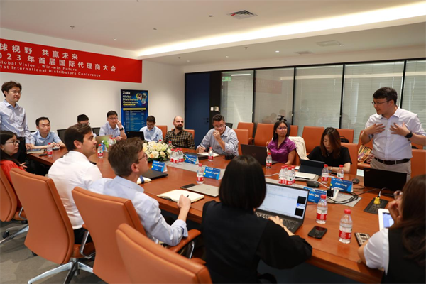Mr. Dong Lei, deputy general manager of Zolix, also invited the representatives of international distributors and domestic product users on a tour of the company's R&D center and production line to further understand the quality of Zolix's products and to have a deeper understanding and knowledge of the products and business. During the tour, the experts from Business Development Department introduced the new products and technologies of many in-house product lines (including the main developed optoelectronic modules, fluorescence, Raman, photoelectric detection, hyperspectral, optical machinery and components, nano-piezoelectric displacement stage, etc.) to the distributors and domestic product users from different countries, and also exchanged ideas and experiences with each other to improve business interactions and explore the global market together.
