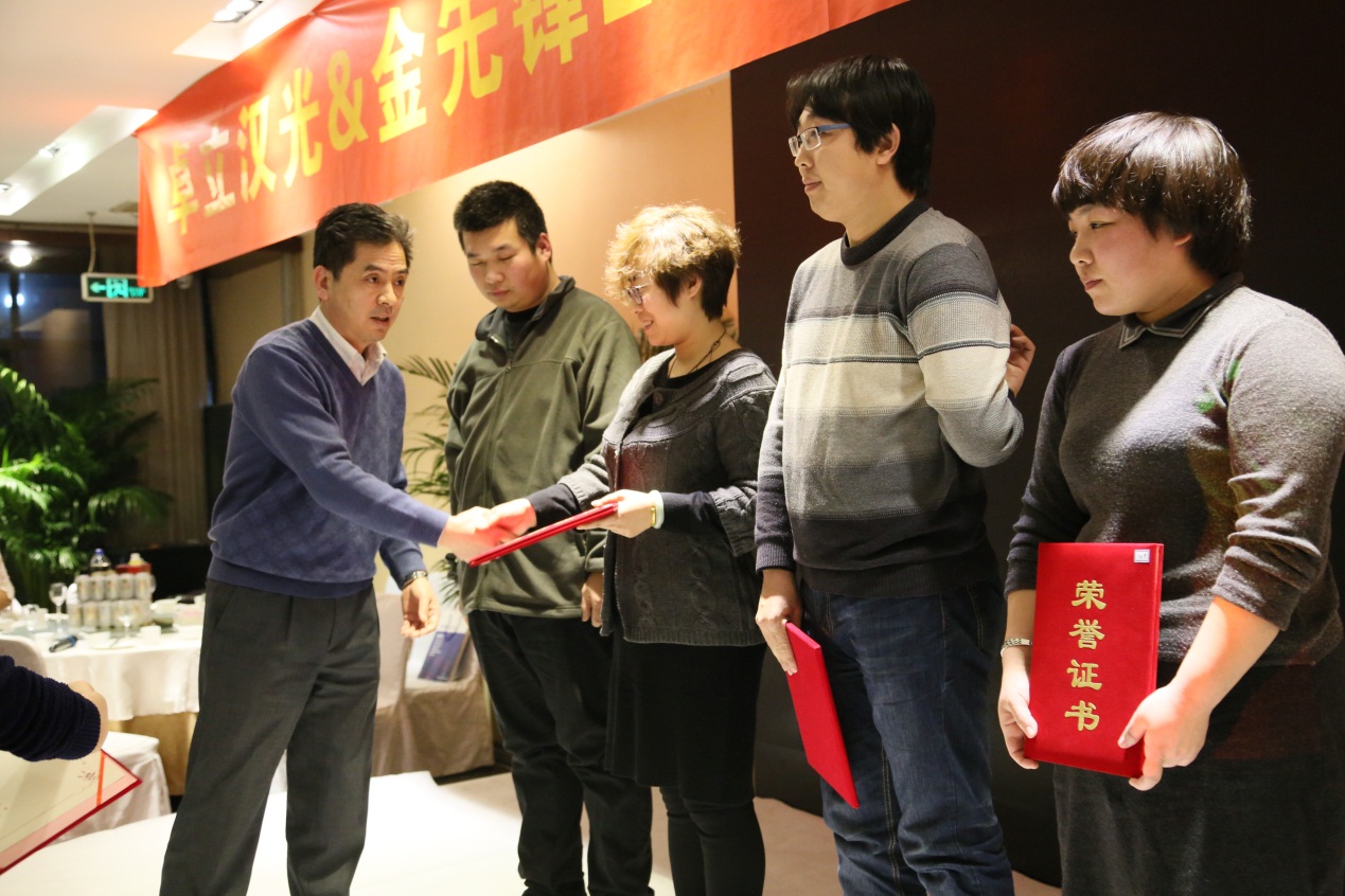 隨后公司相關(guān)領(lǐng)導(dǎo)向各部門工作表現(xiàn)優(yōu)秀的員工頒發(fā)了“優(yōu)秀員工證書”,并號(hào)召全體員工向他們學(xué)習(xí),學(xué)習(xí)他們在各自崗位上盡職盡責(zé)、任勞任怨,所有優(yōu)秀員工工資直接晉升兩級(jí),兩級(jí)哦!所以我們都要繼續(xù)努力,爭當(dāng)明年的優(yōu)秀員工。