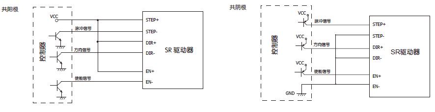 SR2 驅(qū)動(dòng)器有2 個(gè)高速輸入口STEP 和DIR,光電隔離,可以接受5-24VDC 單端或差分信號(hào),*高電壓可達(dá)28V,信號(hào)下降沿有效。信號(hào)輸入口有高速數(shù)字濾波器,濾波頻率為2MHZ。