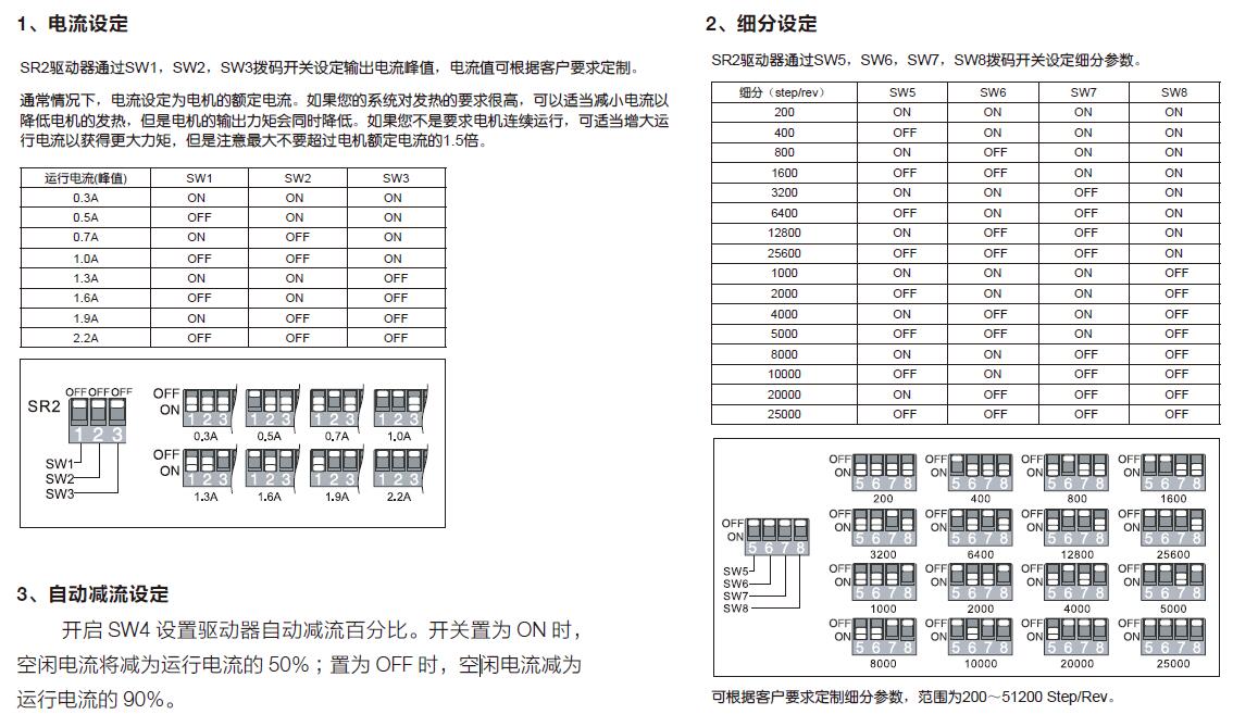 SR 系列兩相步進(jìn)電機(jī)驅(qū)動(dòng)器是基于PID 電流控制算法設(shè)計(jì)的高性價(jià)比細(xì)分型驅(qū)動(dòng)器,具有優(yōu)越的性能表現(xiàn),高速大力矩輸出,低噪音,低振動(dòng),低發(fā)熱,特別適合OEM 客戶的大批量應(yīng)用場合。SR2 驅(qū)動(dòng)器可通過撥碼開關(guān)選擇運(yùn)行電流和細(xì)分,有16 種細(xì)分,8 種電流供選擇,具有過壓,欠壓,相電流過流保護(hù),其輸入輸出控制信號(hào)均采用光電隔離。