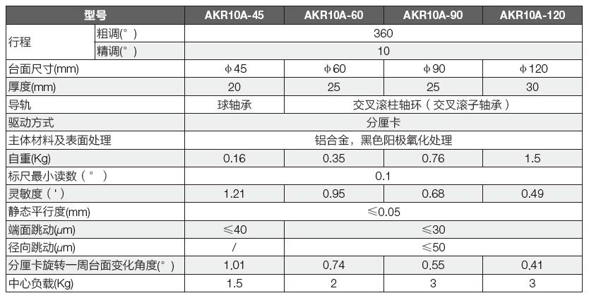 高精密手動(dòng)旋轉(zhuǎn)滑臺(tái)AKR系列特點(diǎn):