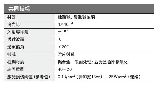 偏振片是用人工方法制成的薄膜,是用特殊方法使選擇性吸收很強(qiáng)的微粒晶體在透明膠層中作有規(guī)則排列而制成的,它允許透過(guò)某一電矢量振動(dòng)方向的光( 此方向稱為偏振化方向),而吸收與其垂直振動(dòng)的光,即具有二向色性。因此自然光通過(guò)偏振片后,透射光基本上成為平面偏振光。一般來(lái)說(shuō),偏振片損傷閾值較小,而且無(wú)法分離出p 偏振光和s 偏振光。