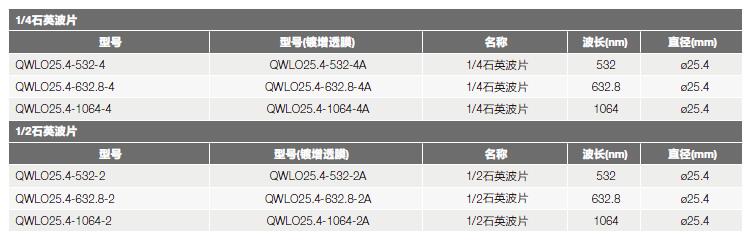 QWLO系列石英多級(jí)波片技術(shù)指標(biāo):
