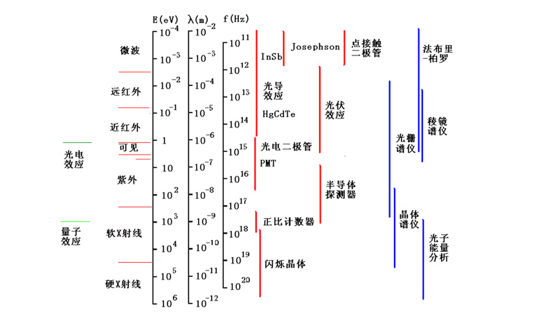而在大中型裝置上,等離子體輻射逐漸向短波移動(dòng),主要探測(cè)區(qū)域?yàn)樽贤?、真空紫外?X 射線。在大中型裝置上,芯部區(qū)域的 C、N和 O等輕雜質(zhì)離子的外層電子被完全剝離。而高Z金屬雜質(zhì)離子由于電離能較高,并未完全電離,仍可以在較短波段(極紫外和X射線波段)觀測(cè)到其輻射的線狀譜線。不同區(qū)域的光譜行為和主要探測(cè)項(xiàng)目也有所不同。這些波段的范圍、分光方法、探測(cè)元件可見(jiàn)下圖: