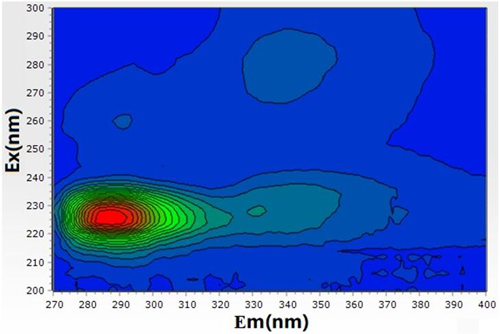 三維熒光光譜(EEM)是將熒光強(qiáng)度以等高線方式投影在以激發(fā)光波長和發(fā)射光波長為縱橫坐標(biāo)的平面上獲得的譜圖,圖像直觀,所含信息豐富。