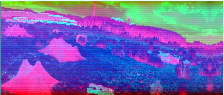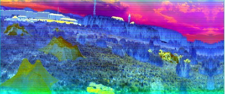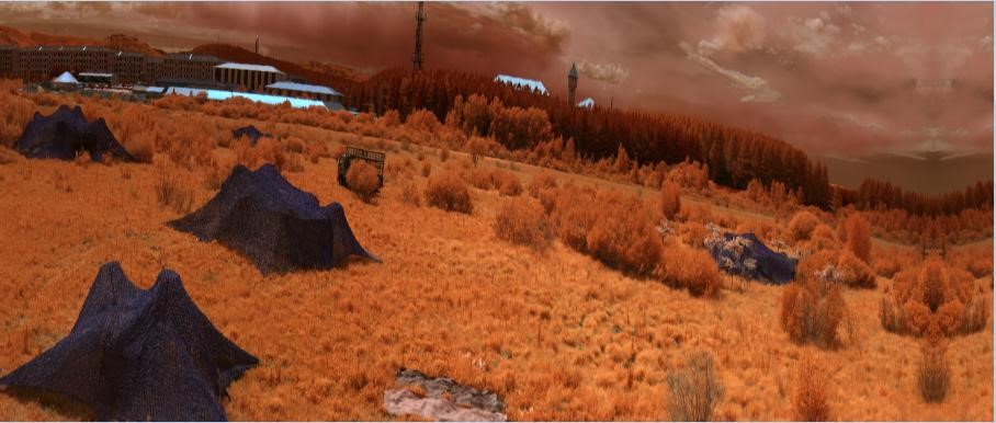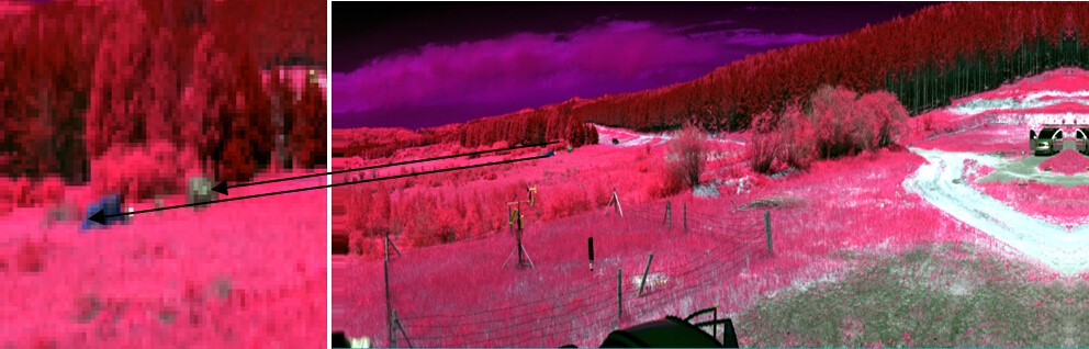 綠色植被、樹木等綠色的目標(biāo)與偽裝目標(biāo)在整個大環(huán)境下都顯示為綠色,而利用短波紅外相機進行拍攝則可以區(qū)分開真實的綠色植被(或者樹木、草)是與偽裝目標(biāo)不一樣的。