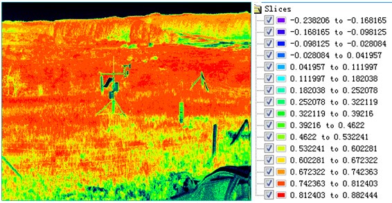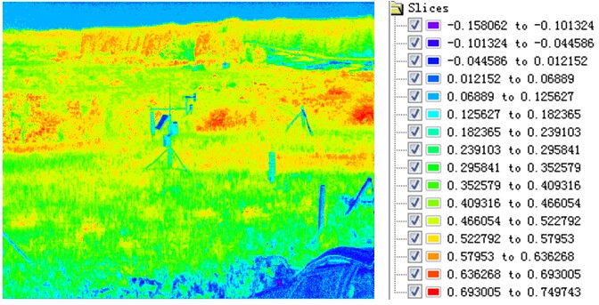 不同的目標(biāo)物(或植被)的歸一化植被指數(shù)是不同的,利用植被標(biāo)準算法進行處理后可以得到相應(yīng)的指數(shù)系數(shù)。