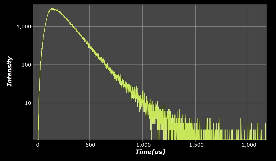 圖4壽命測試光譜圖,Ex=980nm脈沖激光器,Em=539.5nm