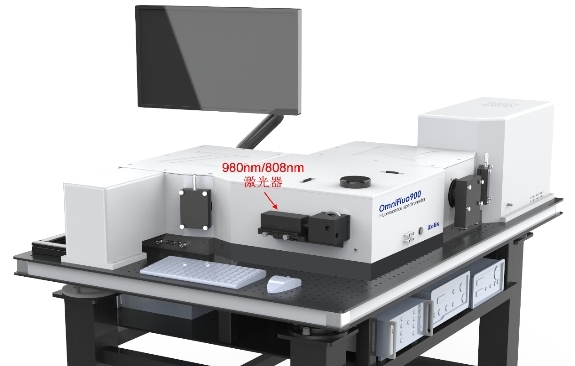本文使用Zolix的OmniFluo990 穩(wěn)態(tài)瞬態(tài)熒光光譜儀表征了NaYF4:YbEr材料基于雙光子吸收的上轉換發(fā)光性質。