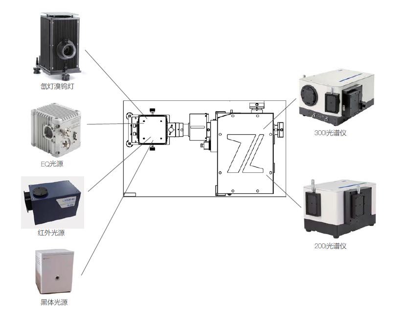 目前市場上有多種燈源,這些燈源只一般提供復(fù)色光,不能根據(jù)用戶的實際應(yīng)用提供單一或是較短波段范圍的光,因此可調(diào)光源也就孕育而生。光源經(jīng)過不同特點的分光器件(一般為單色儀),輸出或是高分辨高窄線寬光,或是高能量的復(fù)色光,從而可以在不同的應(yīng)用場景中使用。