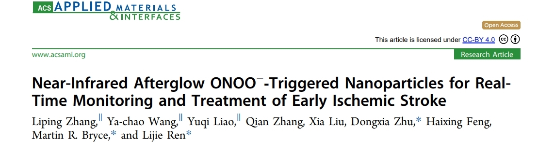 近日,來自深圳第二人民醫(yī)院的張麗蘋老師課題組在國際知名期刊《Applied Materials & Interfaces》上發(fā)表了題為“Near-Infrared Afterglow ONOO−?Triggered Nanoparticles for Real-Time Monitoring and Treatment of Early Ischemic Stroke”的文章,首次報道了一種通過NIR余輝開啟和激活,并用于IS協(xié)同治療的前體藥物。
