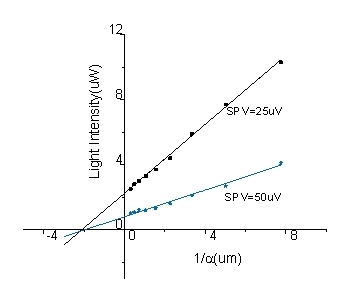利用恒定表面光電壓法測(cè)量擴(kuò)散長度,表面光電壓和光強(qiáng)有以下關(guān)系: