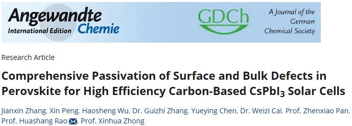 碳基鈣鈦礦太陽電池(C-PSC)兼具穩(wěn)定性和低成本的優(yōu)勢(shì),是一種高性價(jià)比的光伏技術(shù)。然而,較低的效率是其商業(yè)化應(yīng)用的一大障礙。在制備過程中,鈣鈦礦薄膜不可避免地會(huì)產(chǎn)生缺陷,這些缺陷普遍存在于鈣鈦礦的表面和體相中,它們充當(dāng)載流子的復(fù)合中心,導(dǎo)致非輻射復(fù)合損失,*終降低了電池效率和穩(wěn)定性。因此,有效的缺陷鈍化策略是提高電池性能的關(guān)鍵。